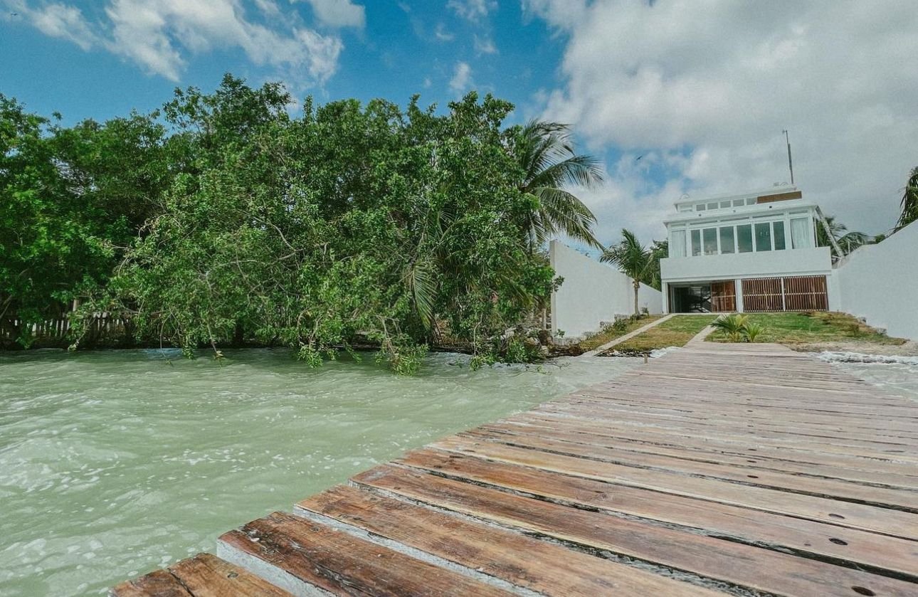 Casa Yuum’ Ha, está ubicada en Chetumal, Quintana Roo y tiene un frente de mar privado; es un diferente estilo de construcción a orilla de mar, cuenta con hermosos colores blancos y luminosos que van acorde al clima cálido del lugar. Cuenta con una caseta de seguridad, estacionamiento amplio, un hermoso jardín con frente al mar, sala, cocina con una barra de granito, comedor, piscina con vista al mar y a la Isla Tamalcab, medio baño, almacén de despensa, 1 habitación para visitas con baño completo, la habitación principal cuenta con su propio baño amplio, con 2 lavamanos, bañera y regadera, un walking clóset, y salida hacia el jacuzzi que tiene lugar al aire libre y vista del mar.