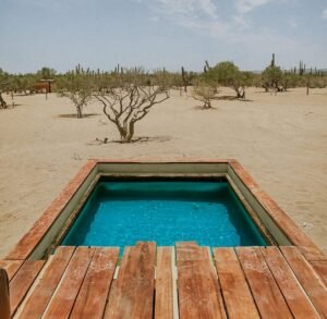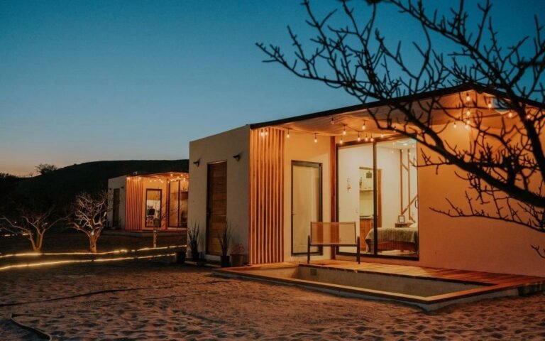 Éste tipo de casas prefabricadas, son muy prácticas, tanto en tiempo de construcción, distribución, diseño, entre otras cosas más. Estos modelos se encuentran ubicados en el desierto de La Paz, Baja California Sur y fueron diseñados especialmente para su clima cálido por el día, y fresco por la noche. El primer modelo es de una planta, y la duración de la instalación en el terreno fue de 1 día, cuenta con una piscina de chukum, deck de madera de tzalam, cocina, un pequeño comedor para 2 personas, 1 habitación con vista al desierto y un baño completo. El segundo modelo también tuvo una duración de instalación en el terreno de 1 día; de dos plantas, cuenta con piscina de chukum, deck de madera de tzalam, cocina, comedor, baño completo, habtación y roof top con vista panorámica.