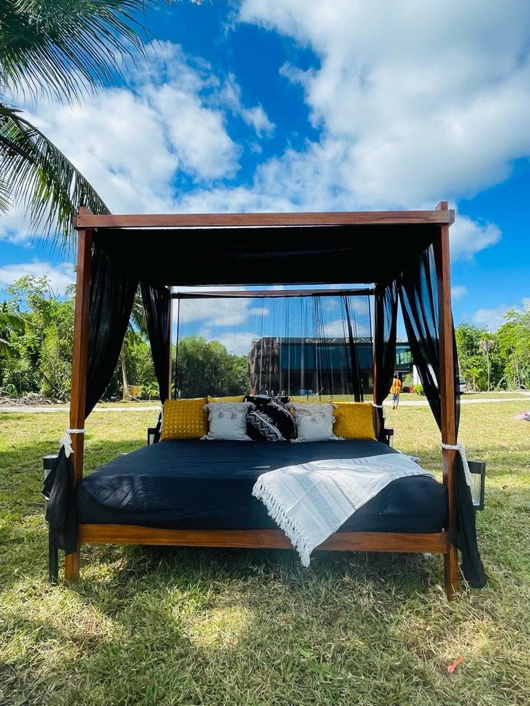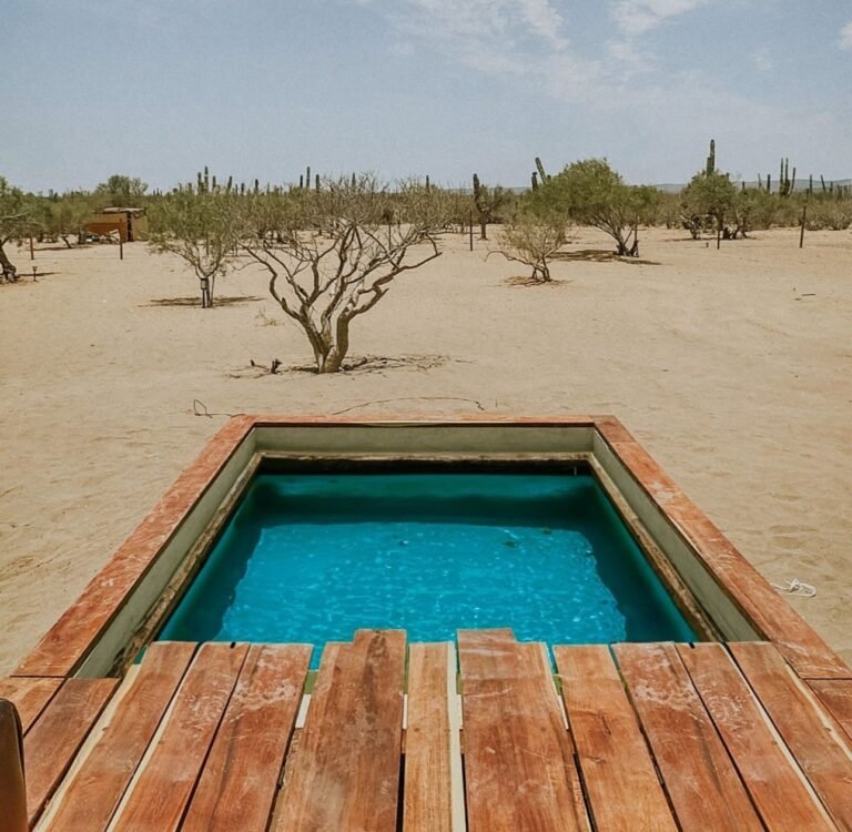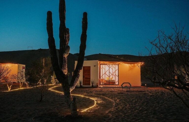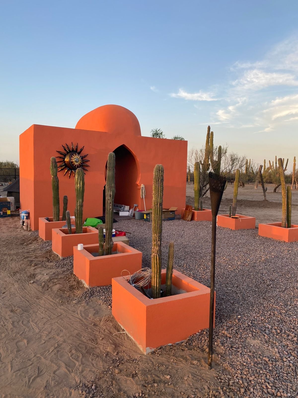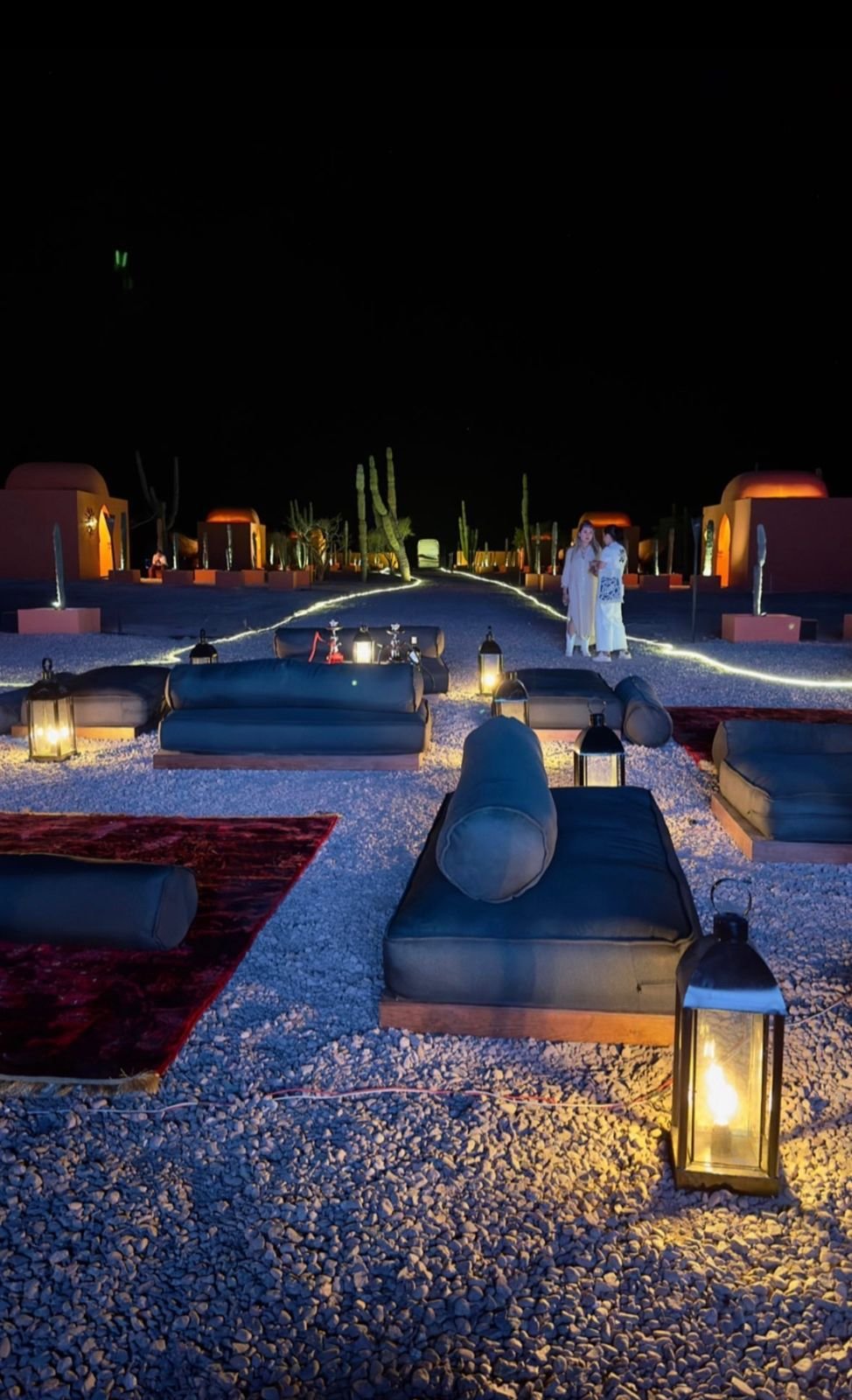 Ubicadas en La Paz, Baja California Sur; este es un proyecto inspirado en las carpas estilo marroquíes en medio del desierto. Ambientamos un espacio en medio del desierto, donde cada casa tiene una estructura de concreto que es el baño completo de la casa carpa, con colores cálidos, y el suelo de éste es un deck de madera de tzalam en forma circular; por dentro cuenta con a/c ya que el clima es caluroso, cama matrimonial y una pequeña sala, además de que toda la decoración es acorde al estilo marroquí con colores cálidos, toques de negro con dorado y sobretodo, en el exterior, antorchas de fuego para ambientar aún más.