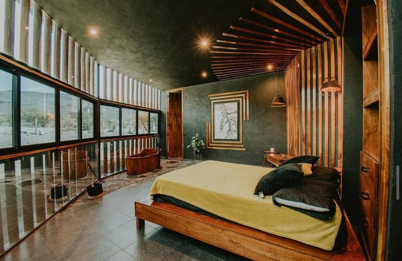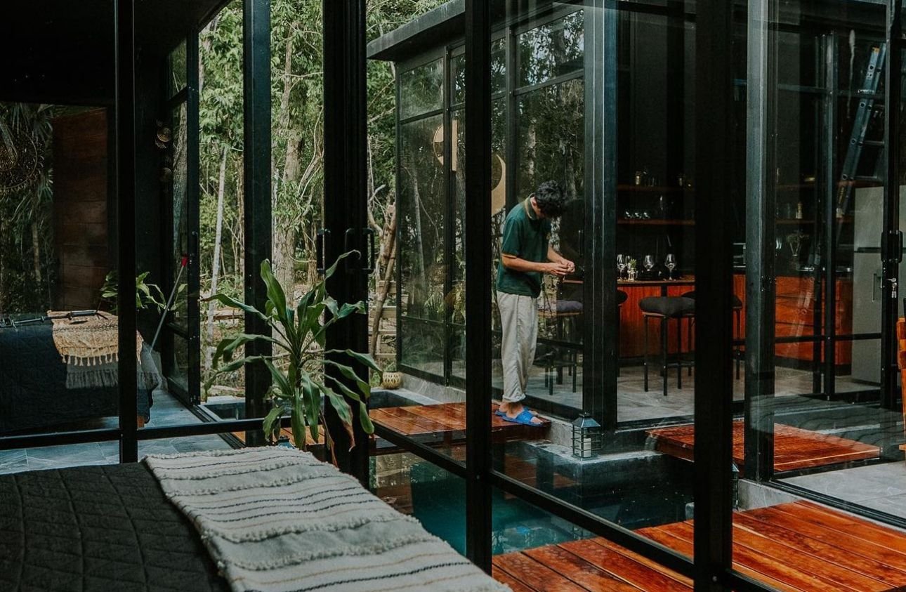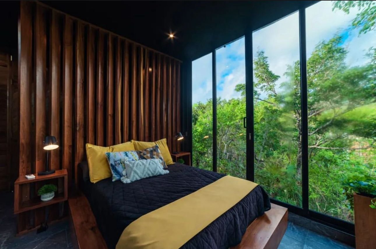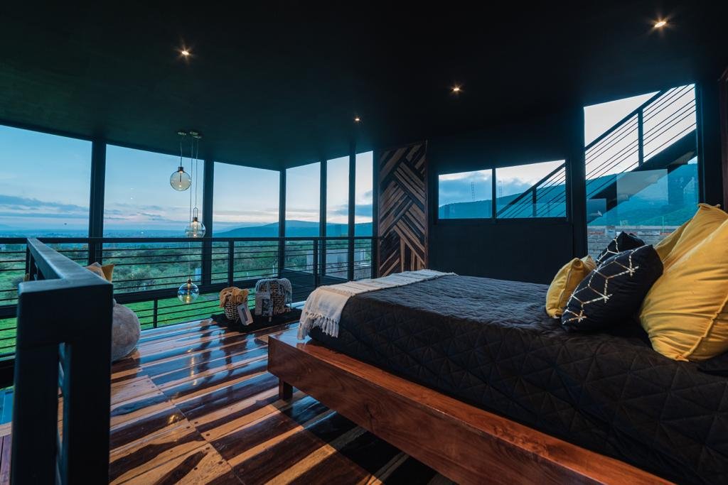 La casa Grand Loft, está diseñada para parejas o personas solteras. Los espacios y decoración está hecha para que las personas puedan relajarse y sentir tranquilidadal estar rodeados de grandes cristales con vistas a los árboles y vegetación. Cuenta con una habitación, un baño, 2 cuartos de trabajo con a/c, sala, cocina, comedor y piscina.