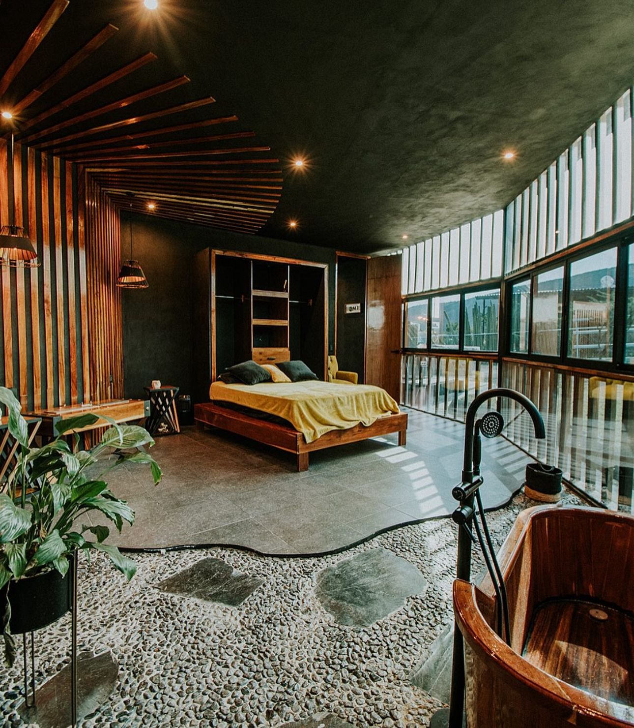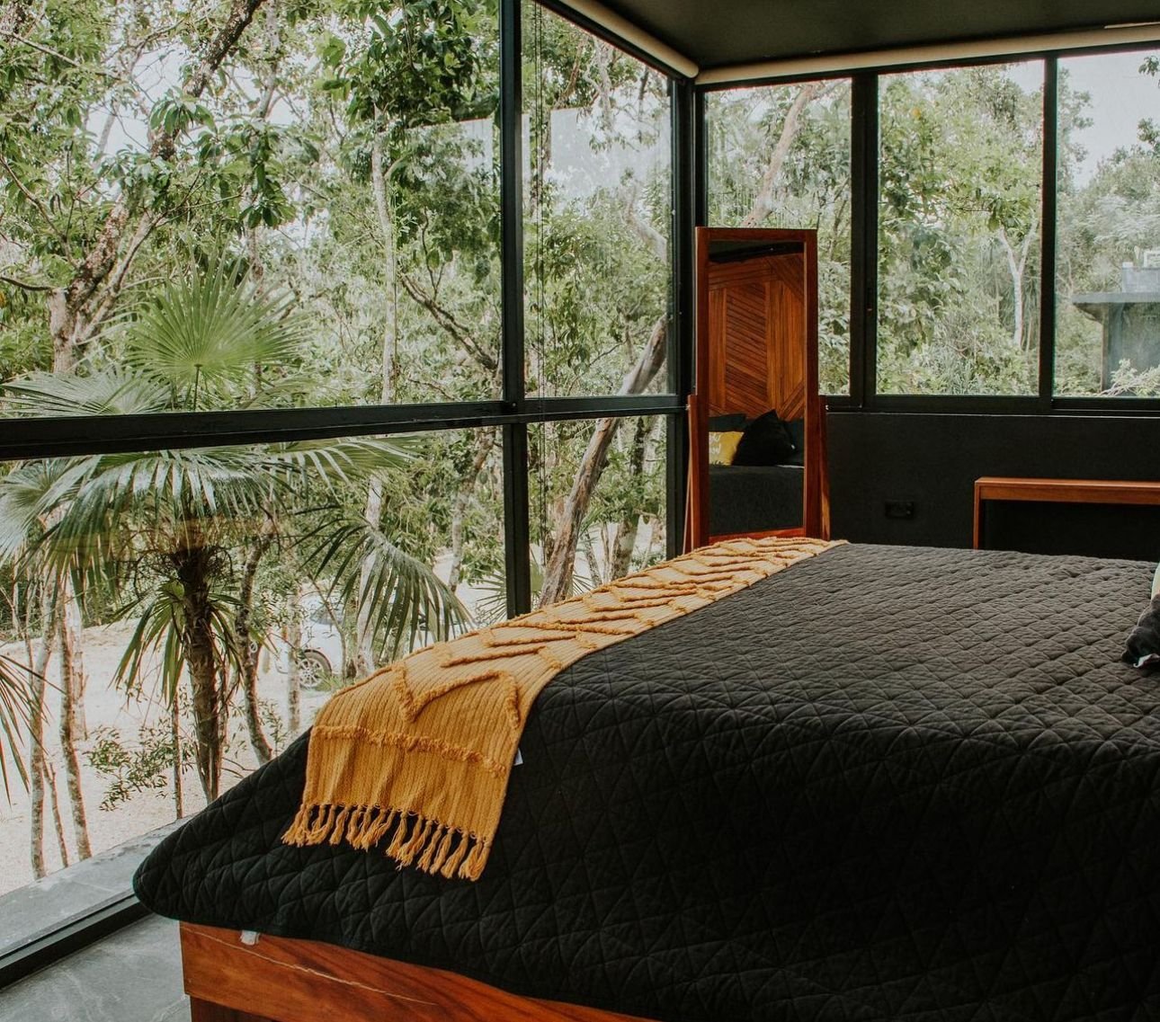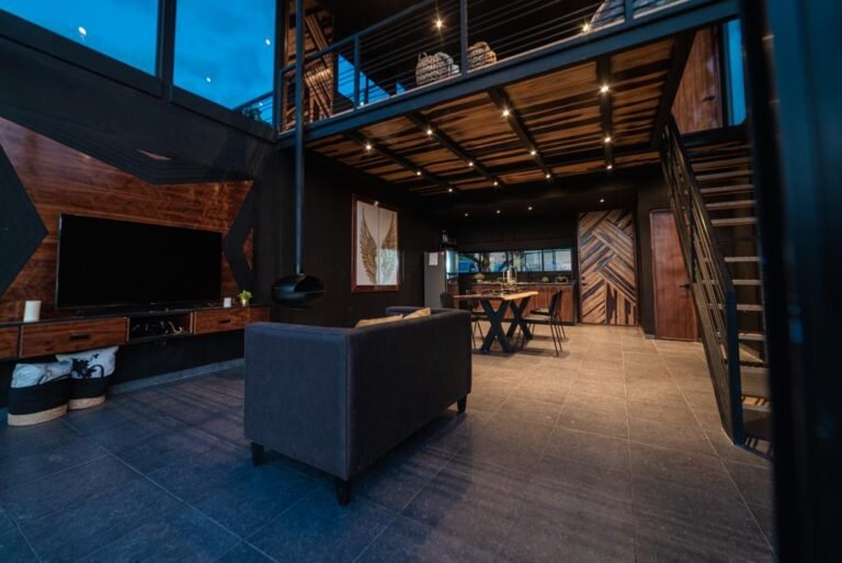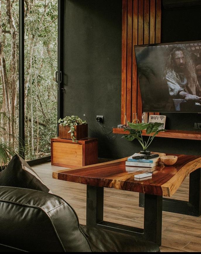 La casa Grand Loft, está diseñada para parejas o personas solteras. Los espacios y decoración está hecha para que las personas puedan relajarse y sentir tranquilidadal estar rodeados de grandes cristales con vistas a los árboles y vegetación. Cuenta con una habitación, un baño, 2 cuartos de trabajo con a/c, sala, cocina, comedor y piscina.