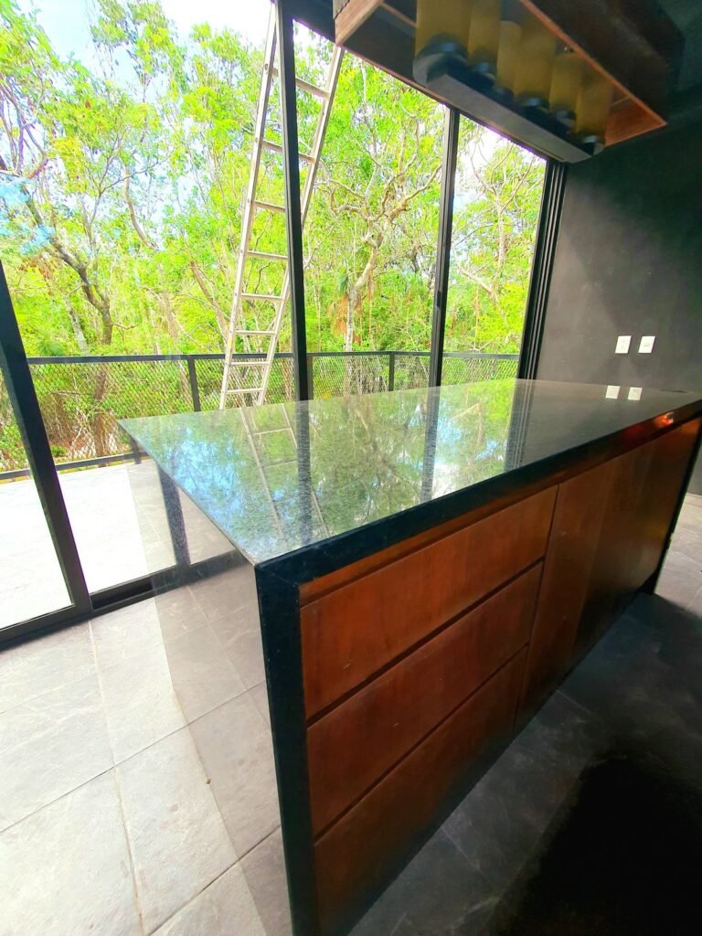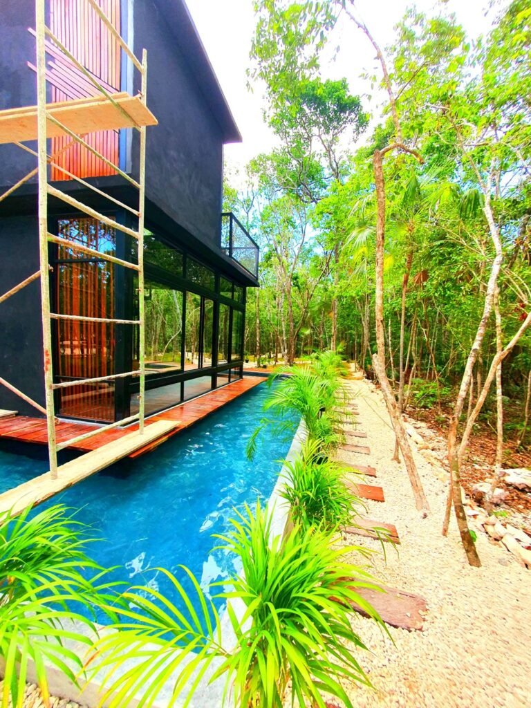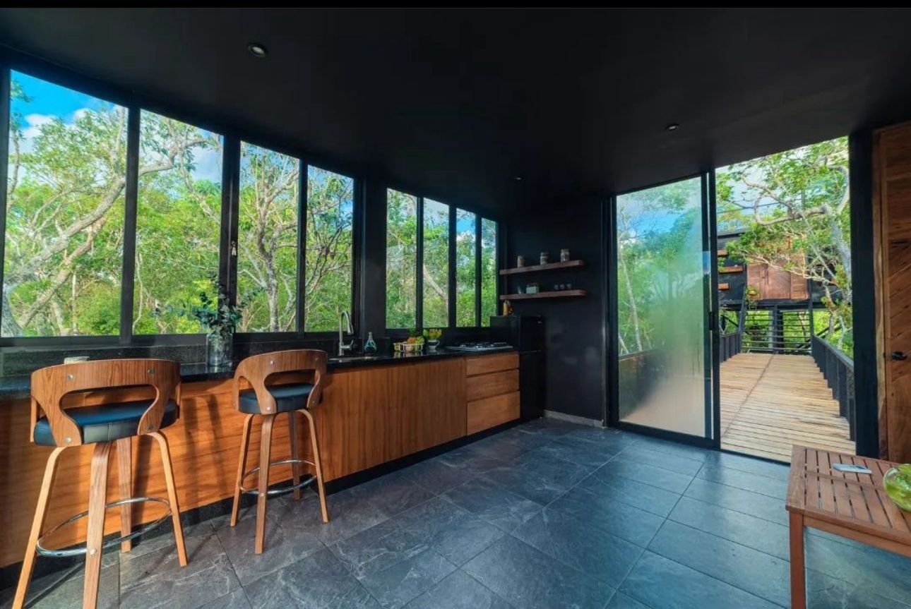 Un diseño único en todo Tulum, Quintana Roo. Es una obra diseñada para poder disfrutar de una excelente vista al cenote natural privado del fraccionaiento en donde se encuentra ubicada la casa, y poder apreciar mejor las copas de los árboles y demás vegetación y fauna. Cuenta con sala, barra/comedor, cocina, medio baño, piscina, una habitación con clóset, baño completo y un roof top con una vista aún más amplia de la selva de Tulum.