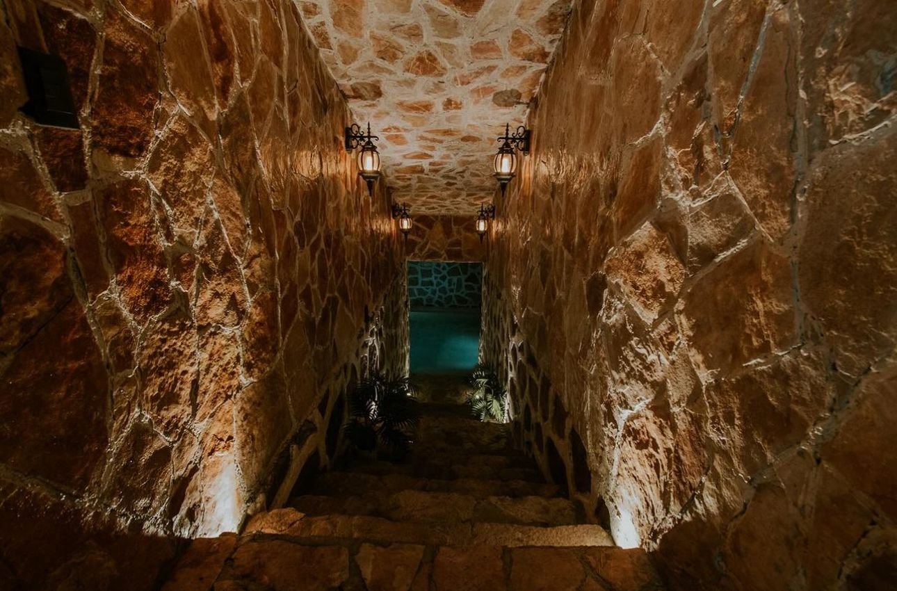 Ubicada en San Miguel de Allende, Guanajuato. Es una casa única ya que cuenta con una gruta privada con una piscina de agua termal, una de las atracciones turísticas por las que se conoce San Miguel de Allende, es por sus grutas de aguas termales. Ésta casa se encuentra en un lugar privado rodeado de hermosos cerros, cuenta con un diseño arquitectónico octagonal, por lo que cuenta con un piso y es muy espaciosa. Tiene sala con una chimenea de herrería, comedor, cocina y una barra desayunador de granito, 1 habitación con una tina jacuzzi y un baño completo. Además de la amenidad única de la gruta con piscina de agua termal, cuenta con un jardín interno que conecta al roof garden con una escalera de caracol de hermosa madera de tzalam. El roof top cuenta con una banca y jardín natural, con vista panorámica.