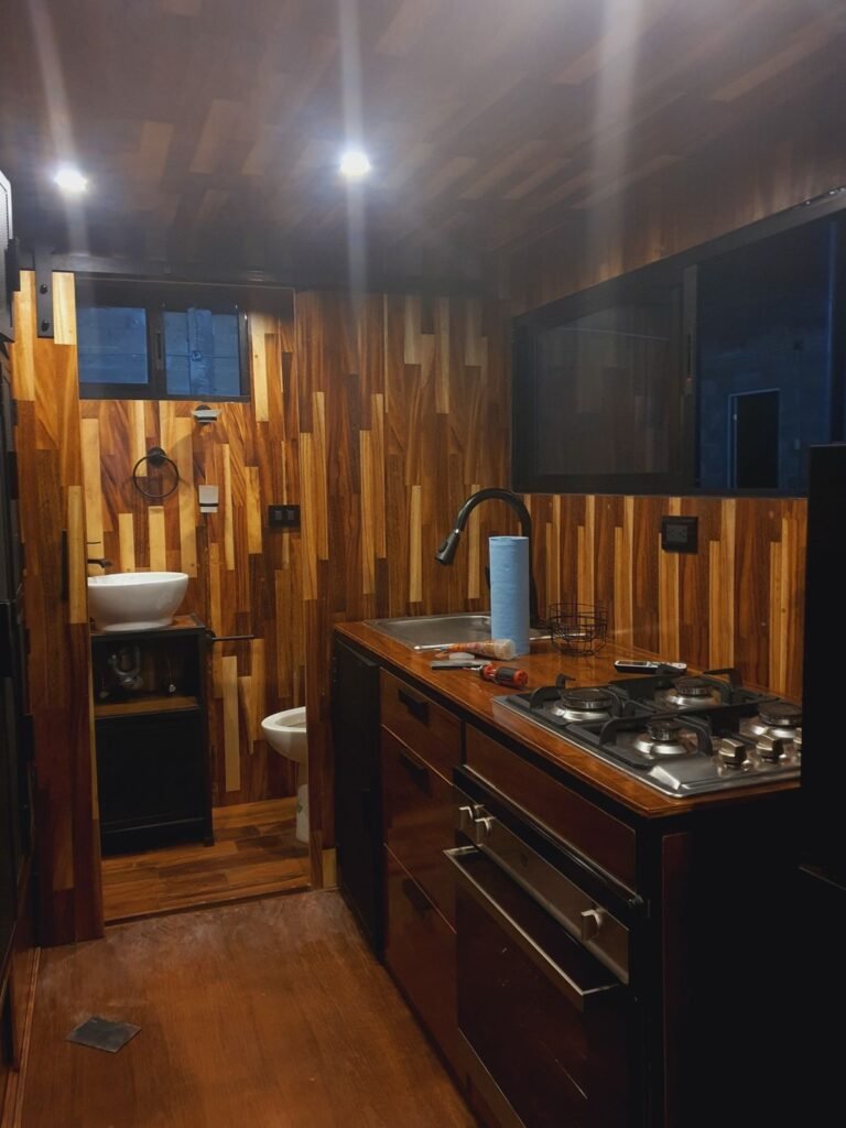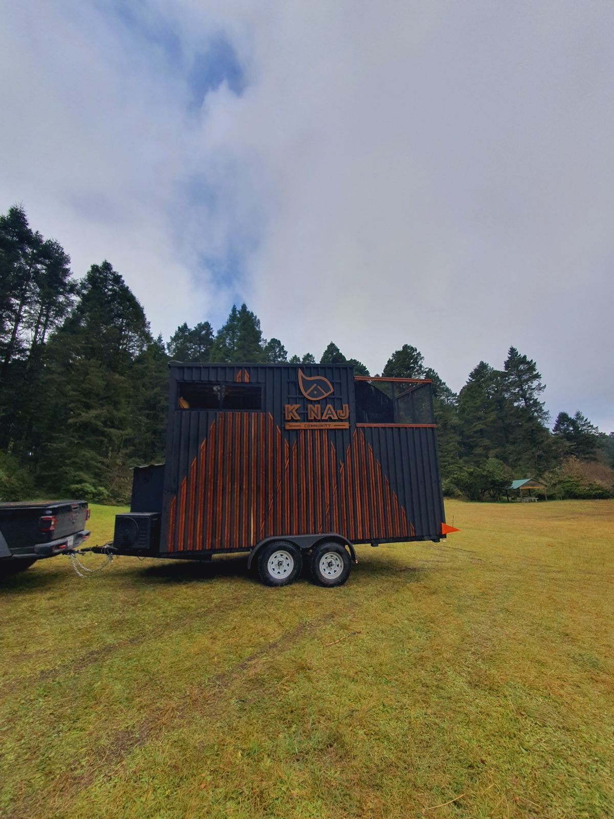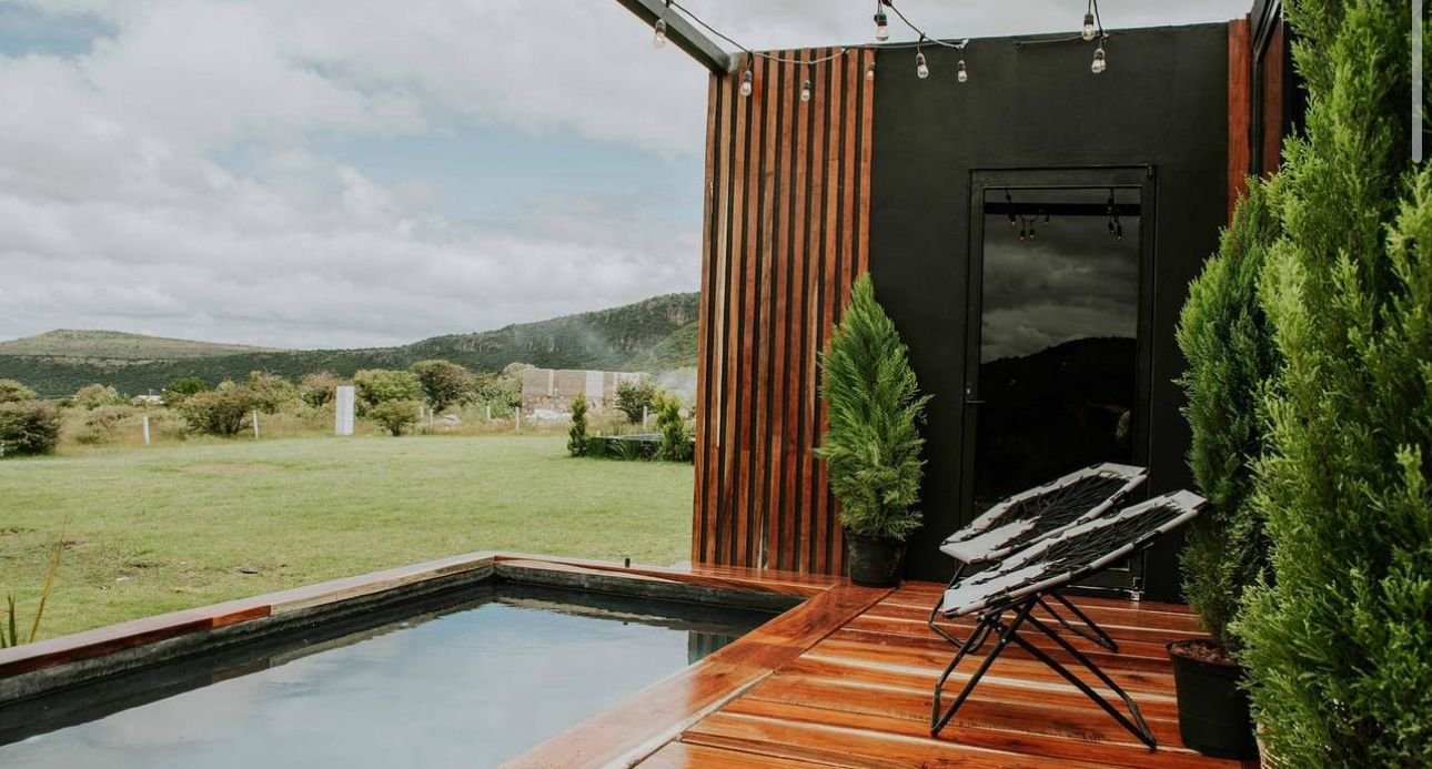 Éste es un proyecto único ya que logramos fusionar la comodidad de una casa con el movimiento. Es ideal para acampar ya que solo se ancla al coche y puede movilizarse. Después de un viaje de prueba para nuestras casas rodantes, las posicionamos en Velasco, Hidalgo; en donde además de acondicionar las casas rodantes en el interior para ser habitadas de planta, también construimos un ambiente alrededor de las casas con estructuras de vigas de acero y madera de tzalam, con jacuzzis al aire libre. El modelo más grande cuenta con baño completo, cocina, clóset, escaleras que dan hacia la habitación y un balcón. El modelo más pequeño cuenta con baño completo, cocina, barra desayunadora, clóset, escaleras de marinero, habitación y un espacio con chimenea y techo de cristal templado para contemplar el cielo.